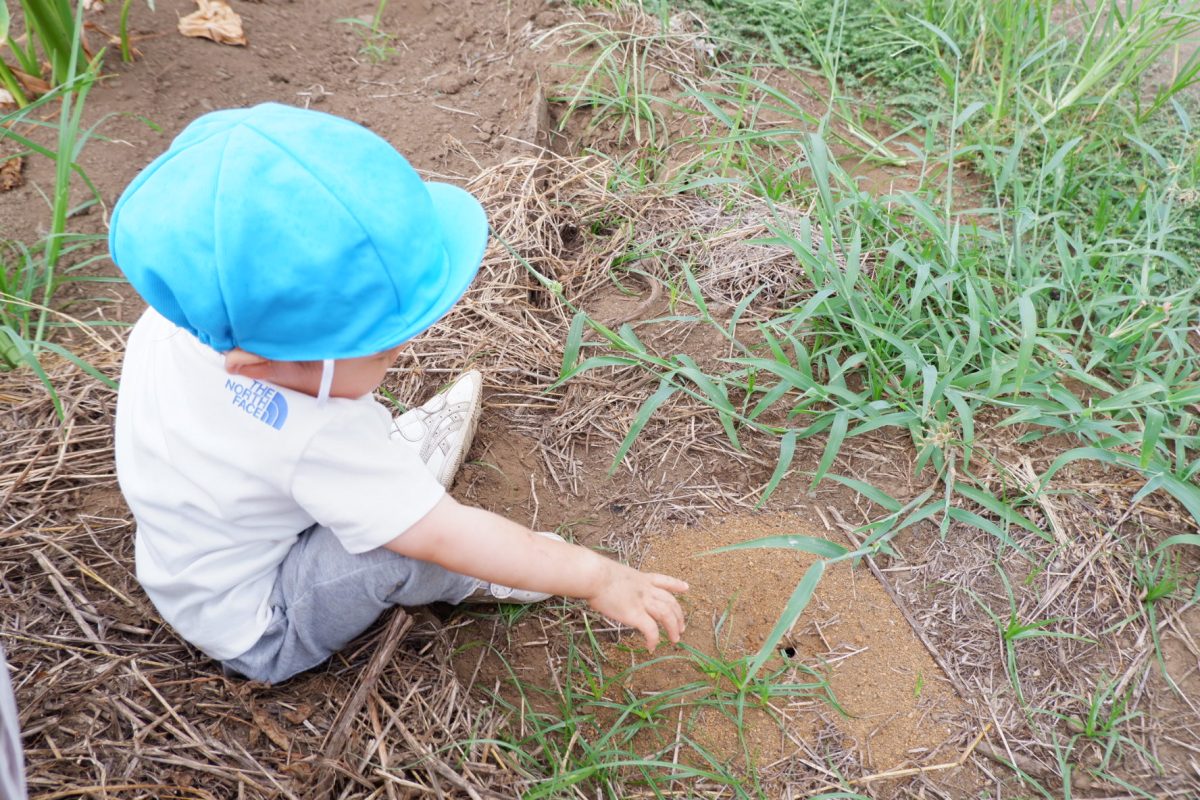 土の上を歩いたり、手で触れて土の感触を全身で楽しむ子どもたち♪