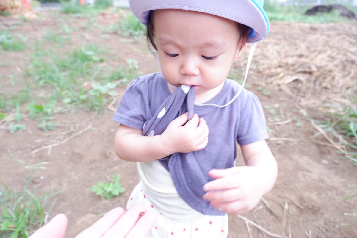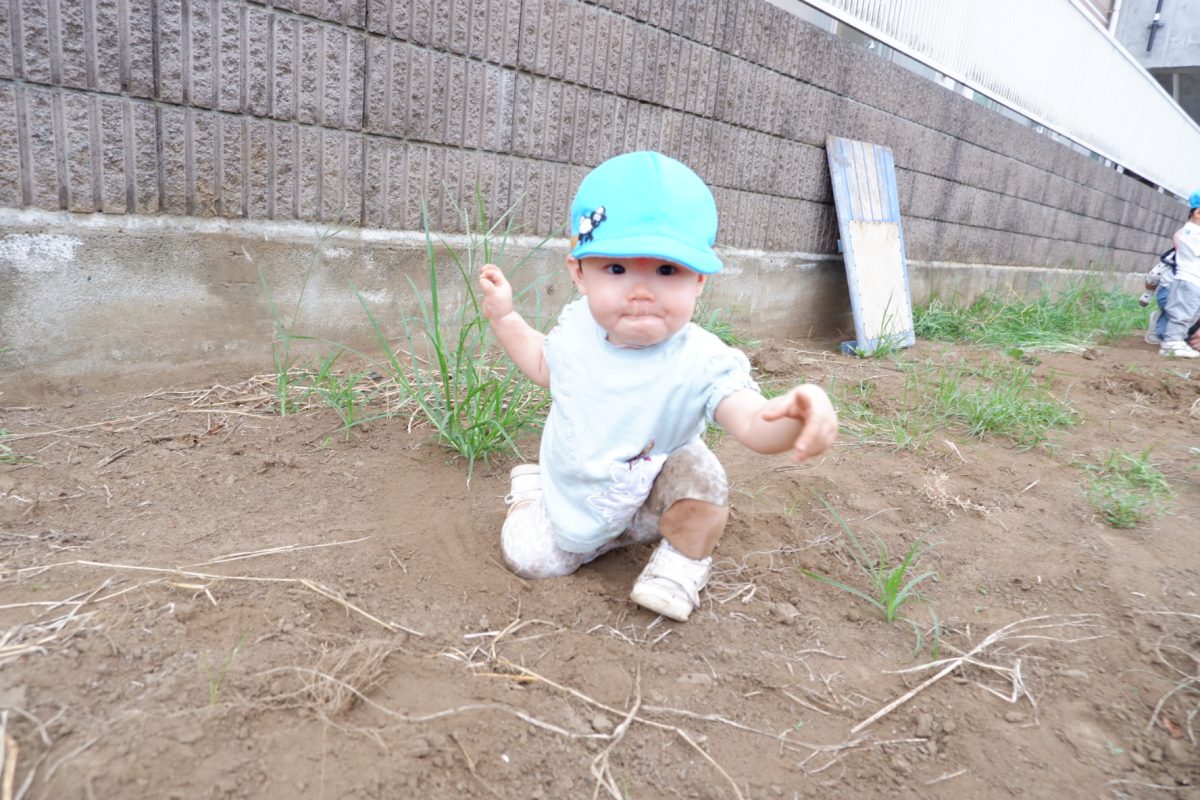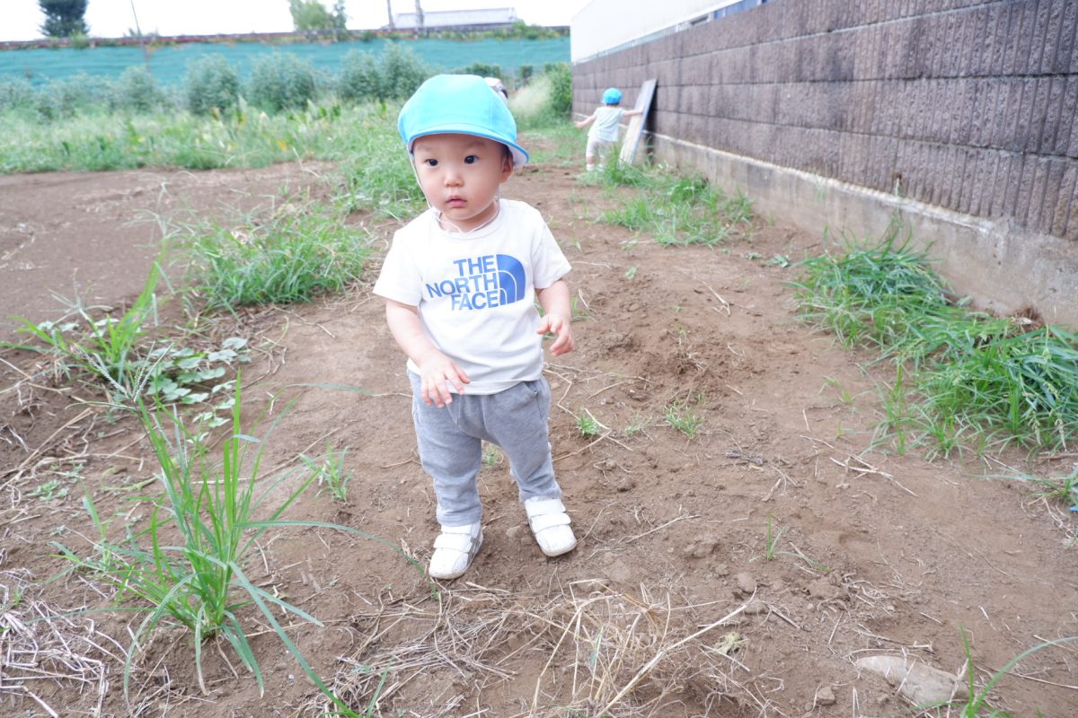 歩けるようになった子も増えたので、くつを履いて畑にお散歩に行きました♪