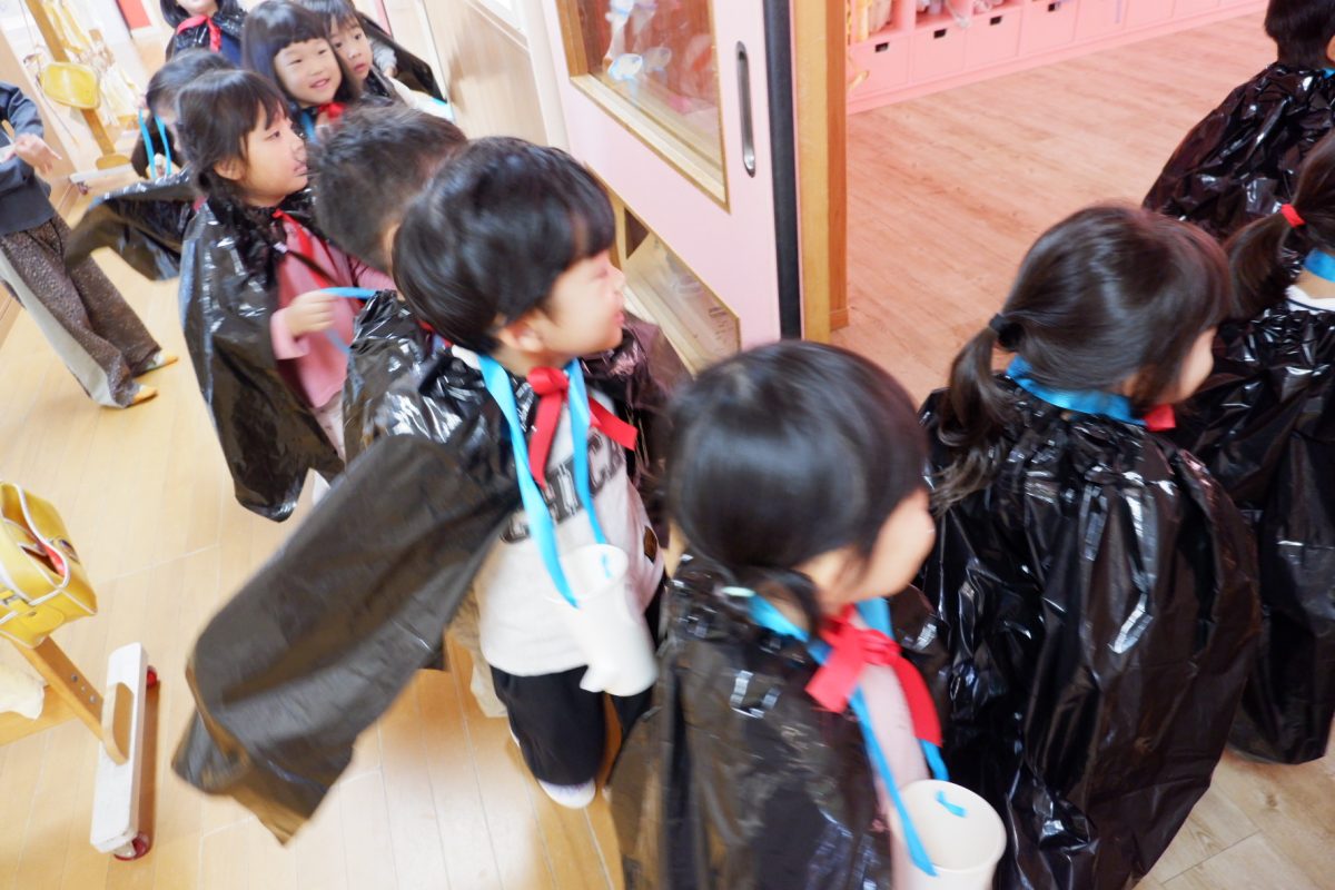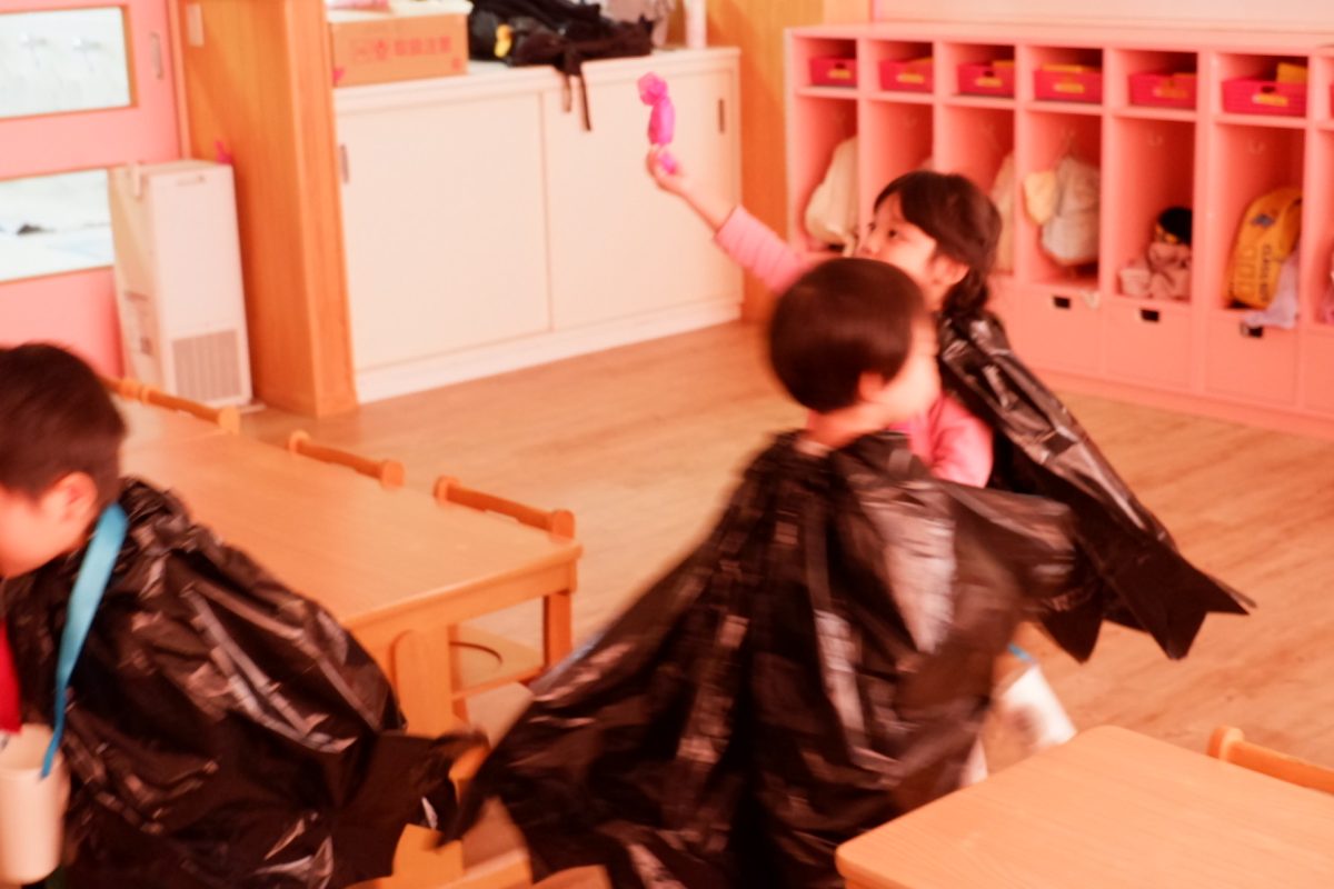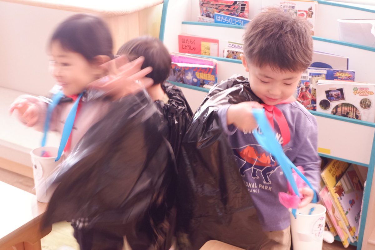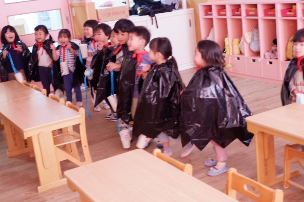 黒いマントをまとって「コウモリ!魔女!」と思い思いのオバケに変身しました!