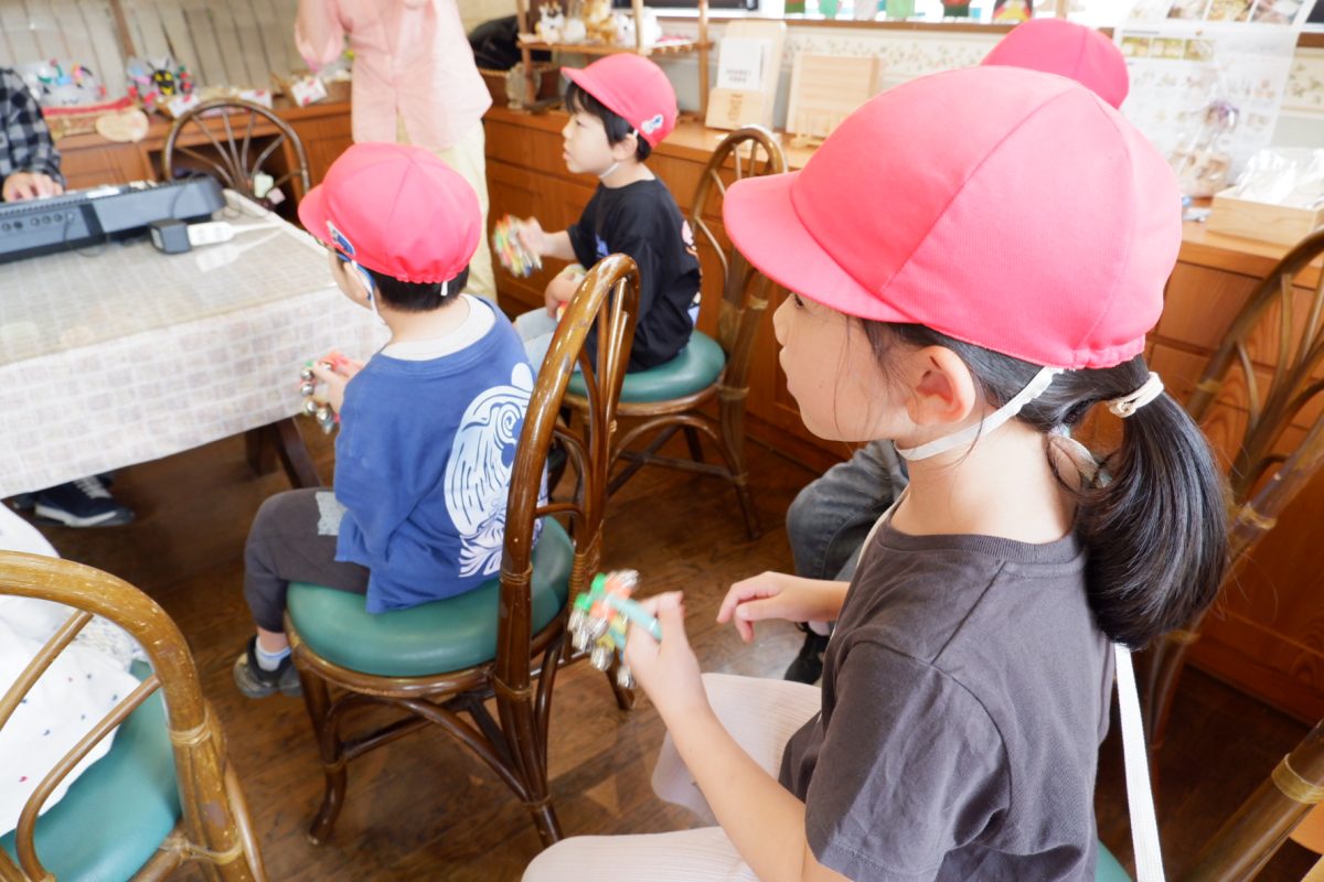 ポレポレさんはギターやキーボードで季節の歌や童謡、ディズニーのお歌を演奏してくれました♩音に合わせて歌ったり、鈴の音を楽しんだり‥気付いたら1時間ほど夢中になっていました!!