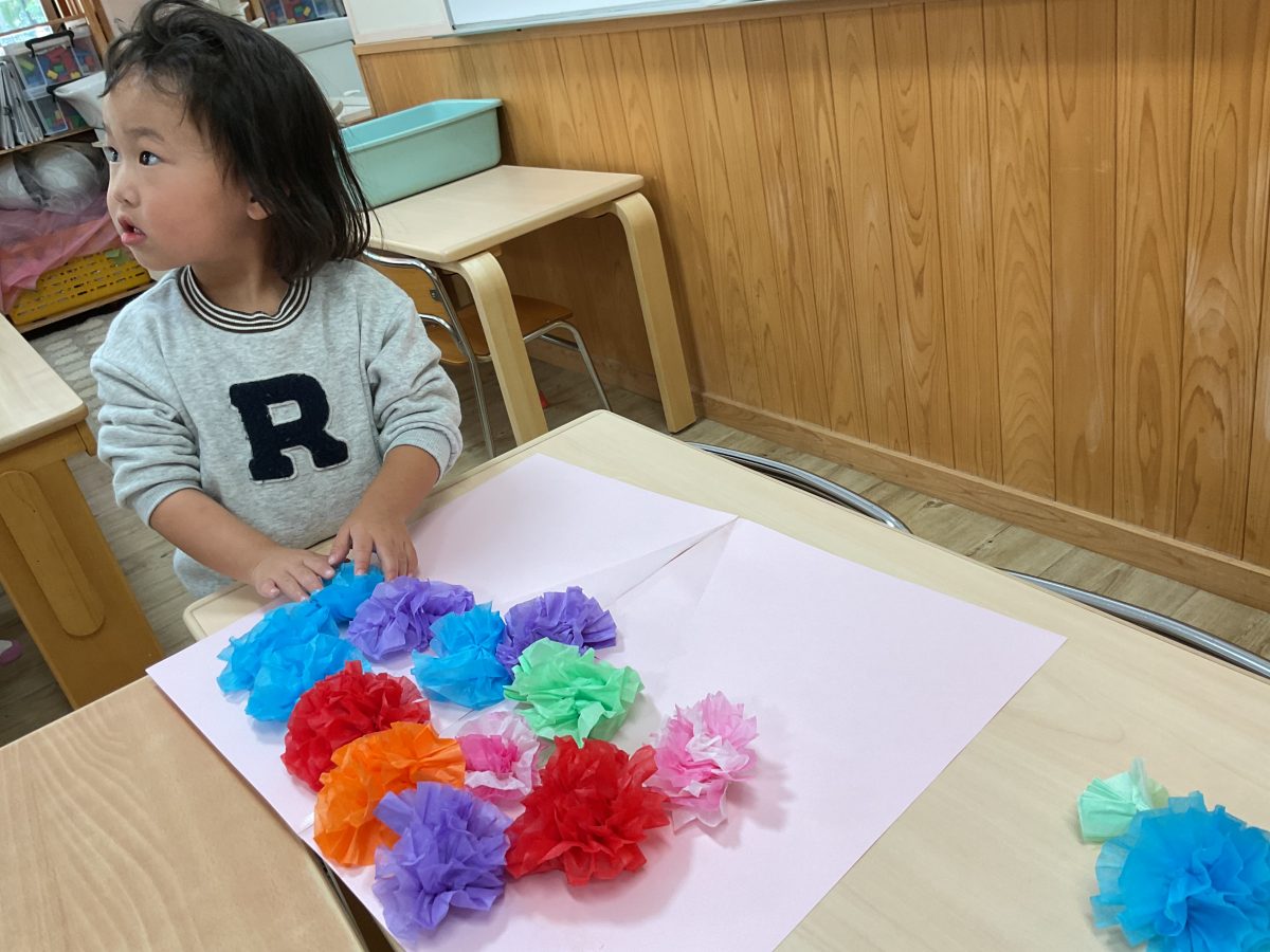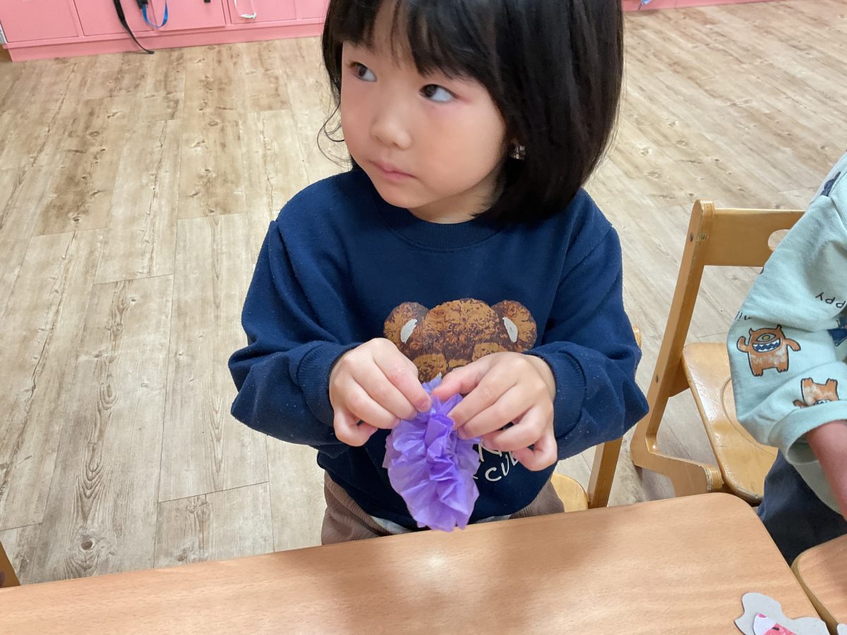 花紙を破れないように1枚1枚はがしていきお花を作りました♪