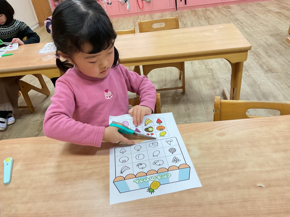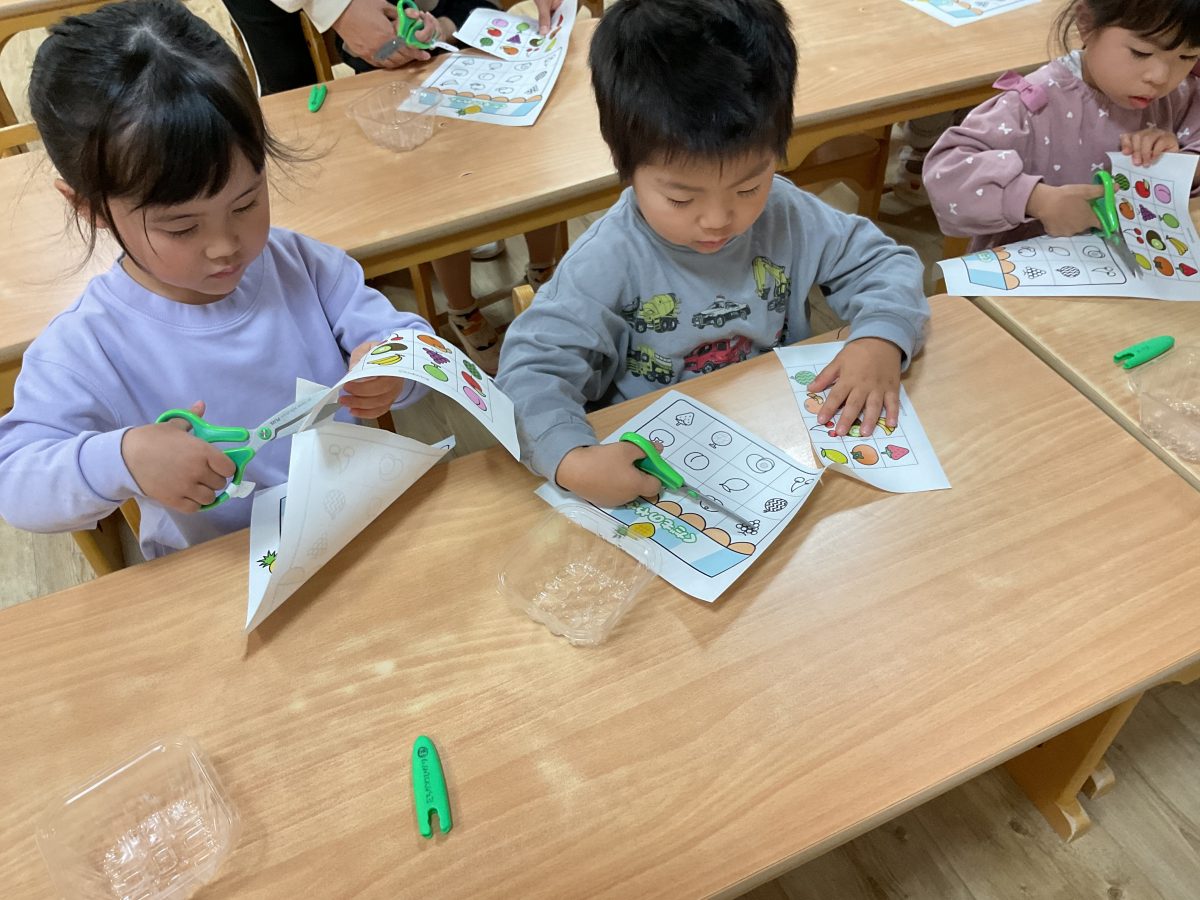 指先の発達もだいぶしてきておりハサミも少し緊張しながらもみんなで一緒に練習しています!