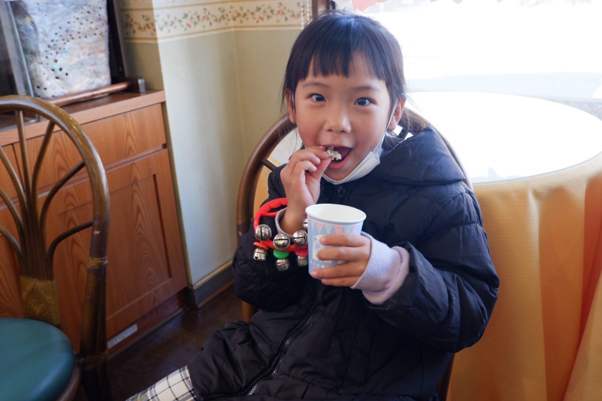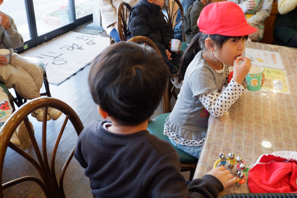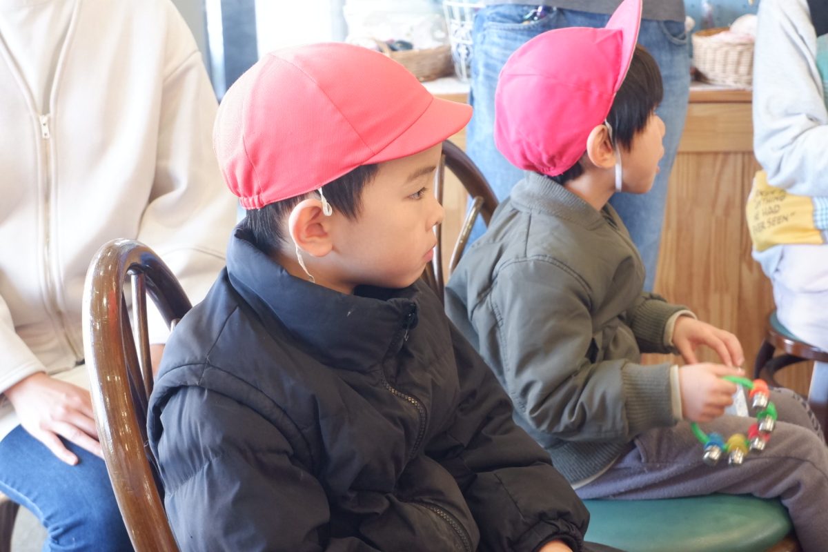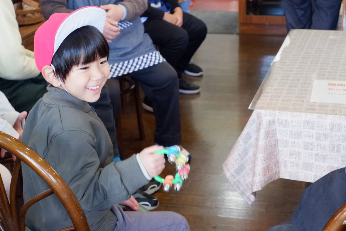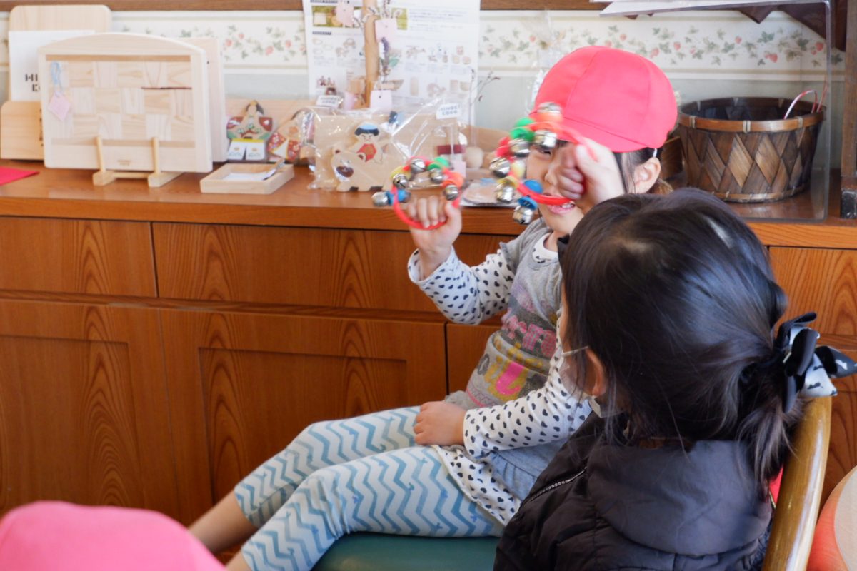 あわてんぼうのサンタクロースや赤鼻のトナカイ、きよしこの夜などクリスマスソングをピアノ、ヴァイオリン、そして子どもたちが奏でる鈴の音で楽しみました。