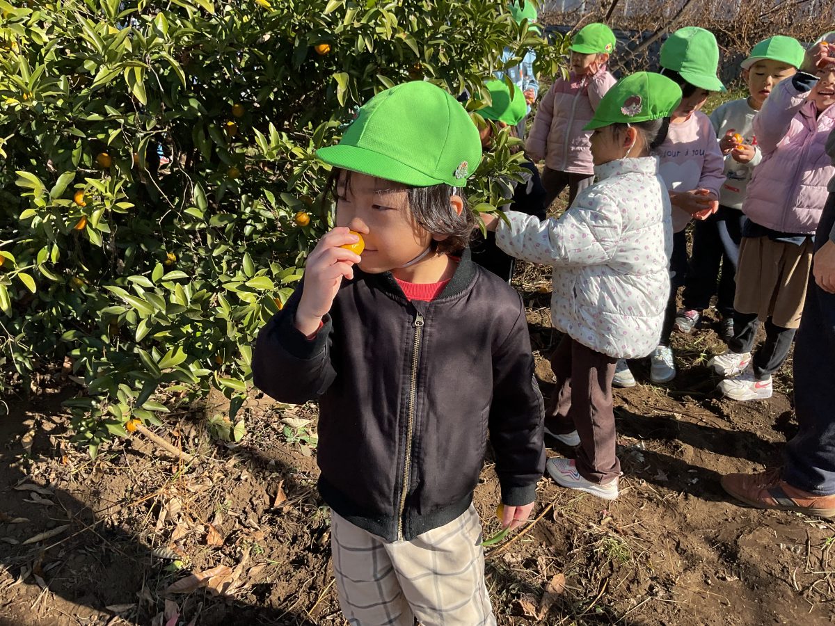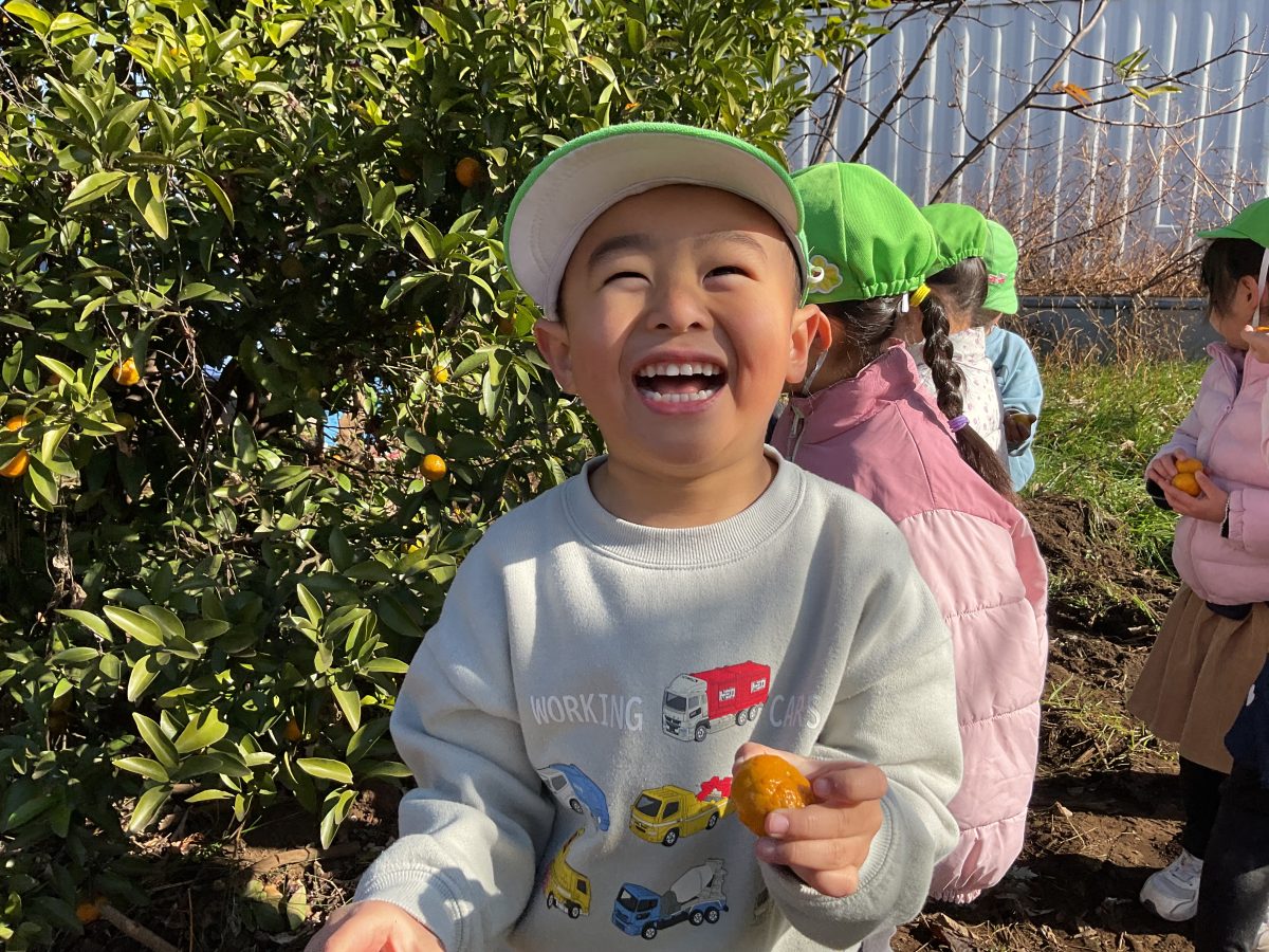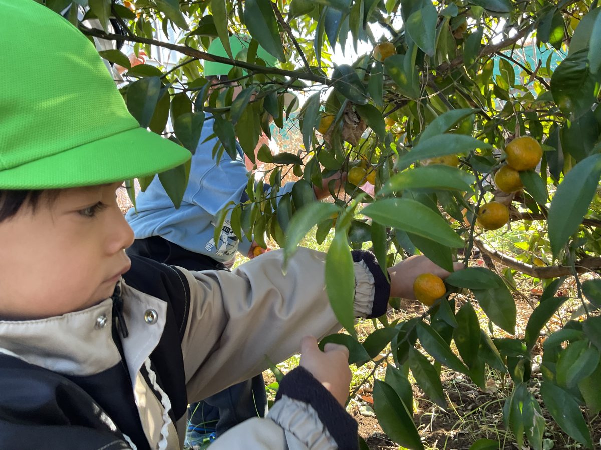 柚子の収穫でも、鼻を近づけて…「ピーマンみたいな匂いがする〜!」と伝えたりして、香りの違いを確認していました。甘味より苦味を感じる香りだったようです。