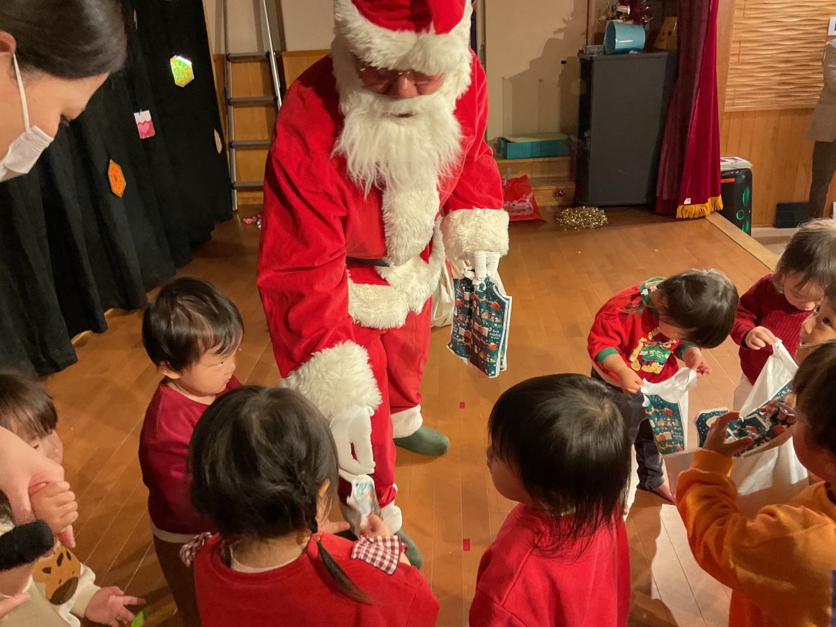 サンタさんから子どもたちへクリスマスプレゼントが配られみんな嬉しそうな表情でした!