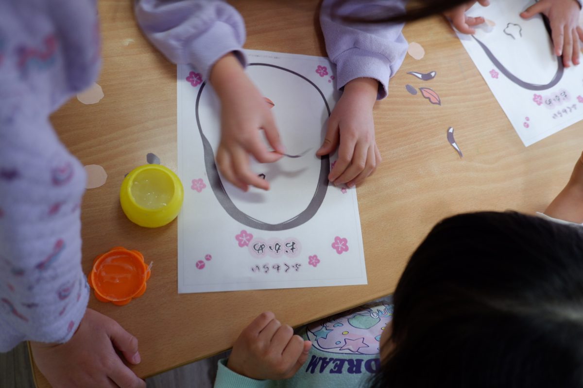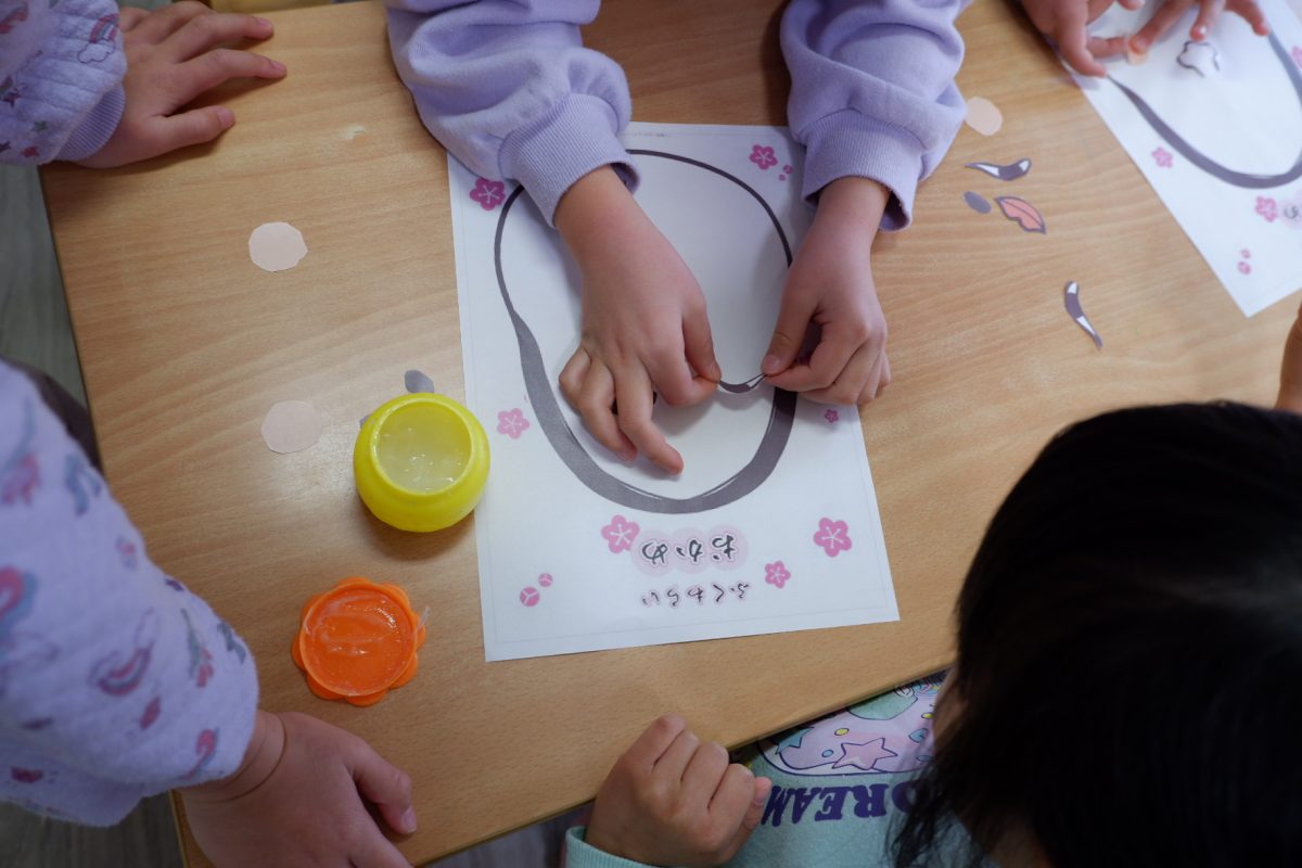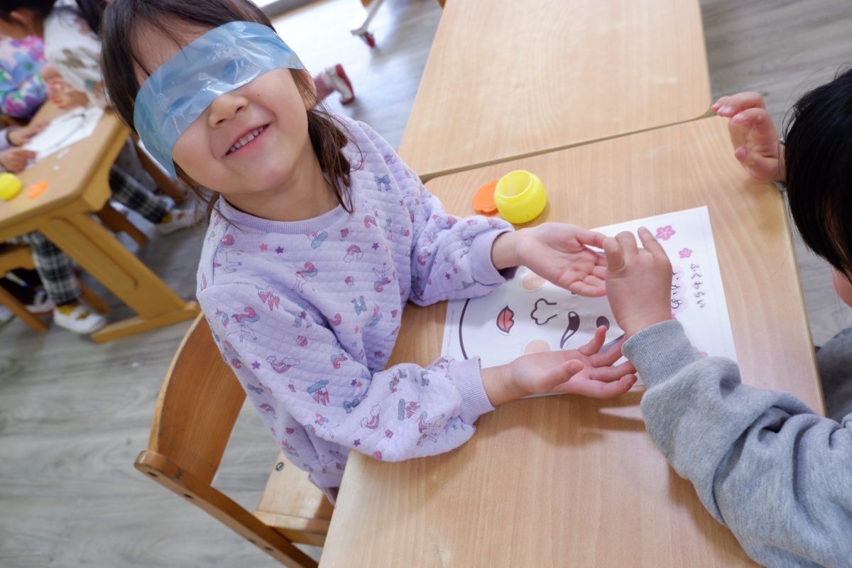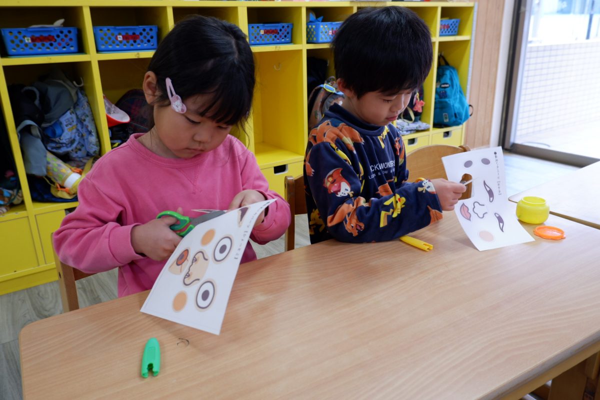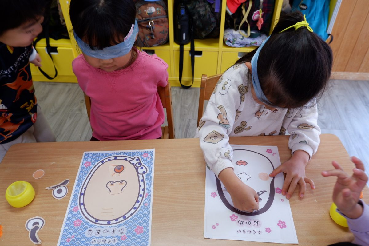 目の向きや顔のパーツの位置でこんなにも変わるの!と笑いながら取り組んでいました。