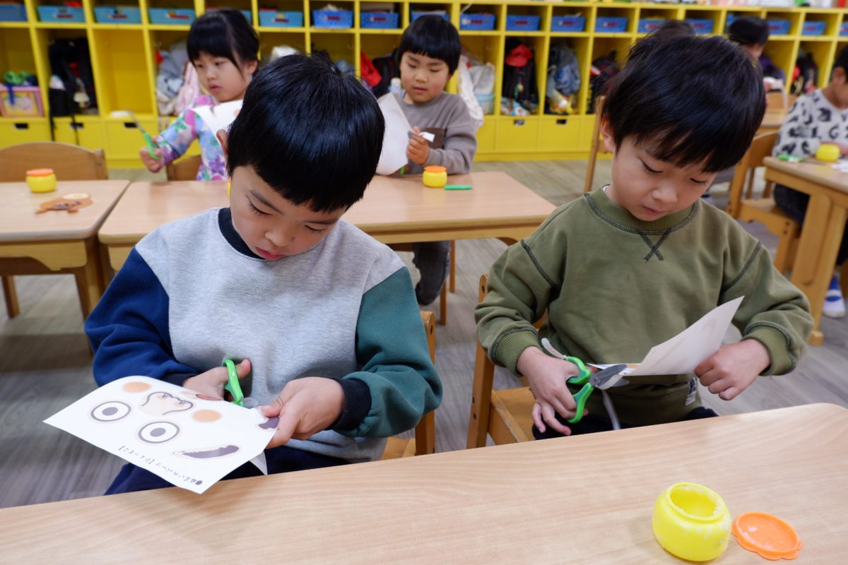 次はひょっとこかおかめの好きな方を選びハサミでチョキチョキ!