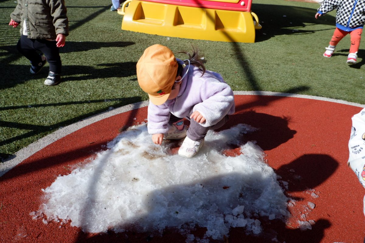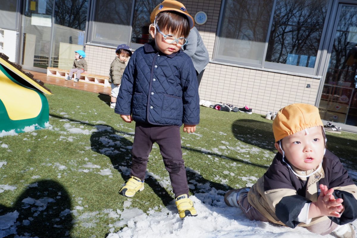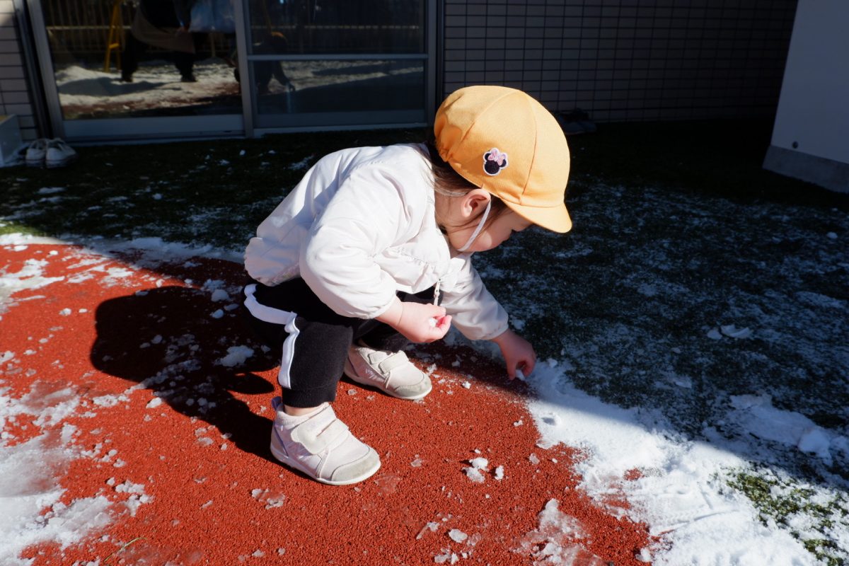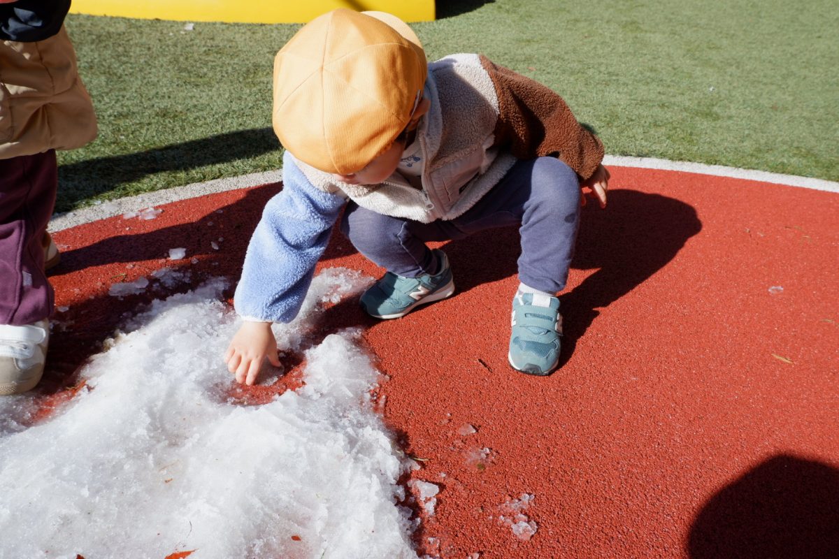 雪を触って冷たさにびっくりしたり、感触を楽しんだり遊び方は様々なようです。