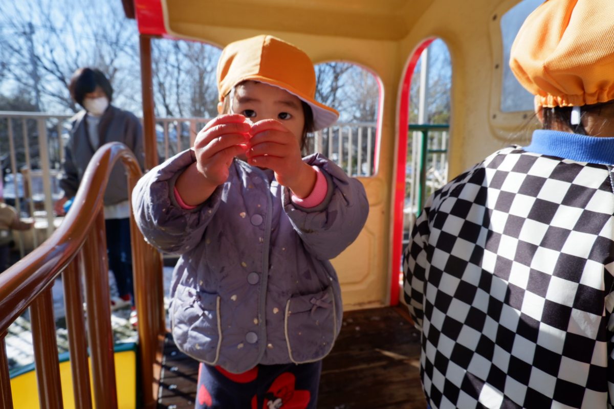 寒い中でも元気に遊ぶもも組さんの姿でした。