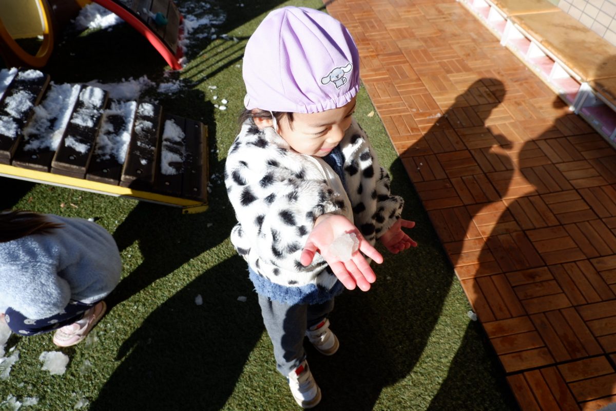 雪を触って「冷た〜い!」と言う子や雪の上を歩いたりすること、それぞれが楽しんでいましたよ!