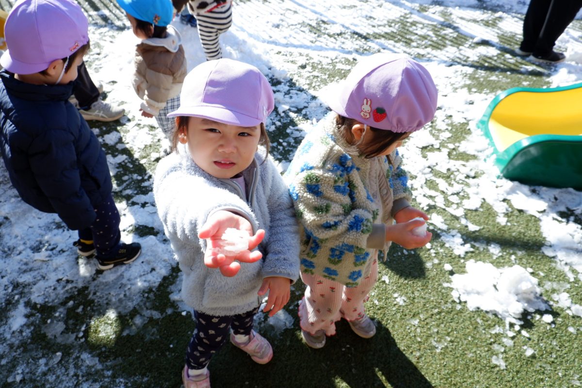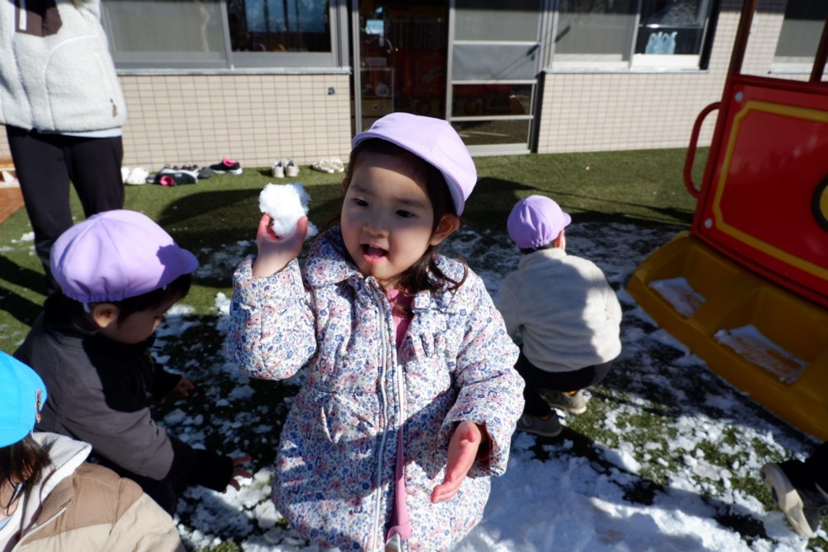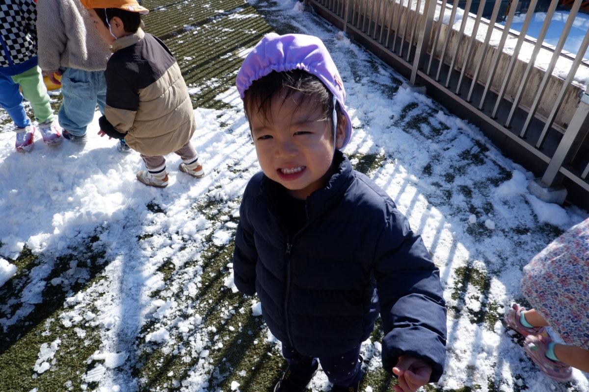 雪を触って「冷た〜い!」と言う子や雪の上を歩いたりすること、それぞれが楽しんでいましたよ!