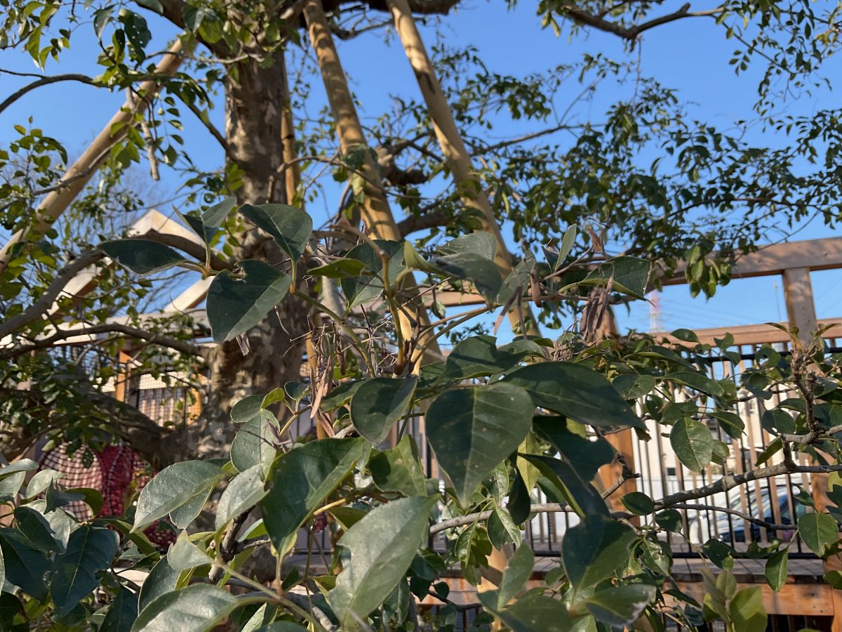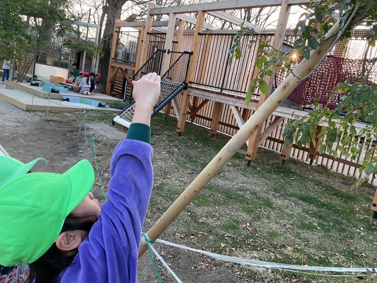 近づくと、一層大きく揺れ始めた葉っぱに「怖い!」「怒ってるんじゃない」と、友だちと伝え合い、先日の節分の鬼を思い出してるような姿も