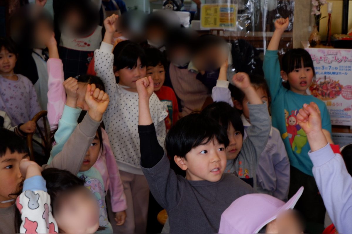 やっくんさんが準備している間は卒園式で歌う思い出のアルバムを歌いました。子どもたちの綺麗な歌声が響き素敵な空間に‥⭐︎