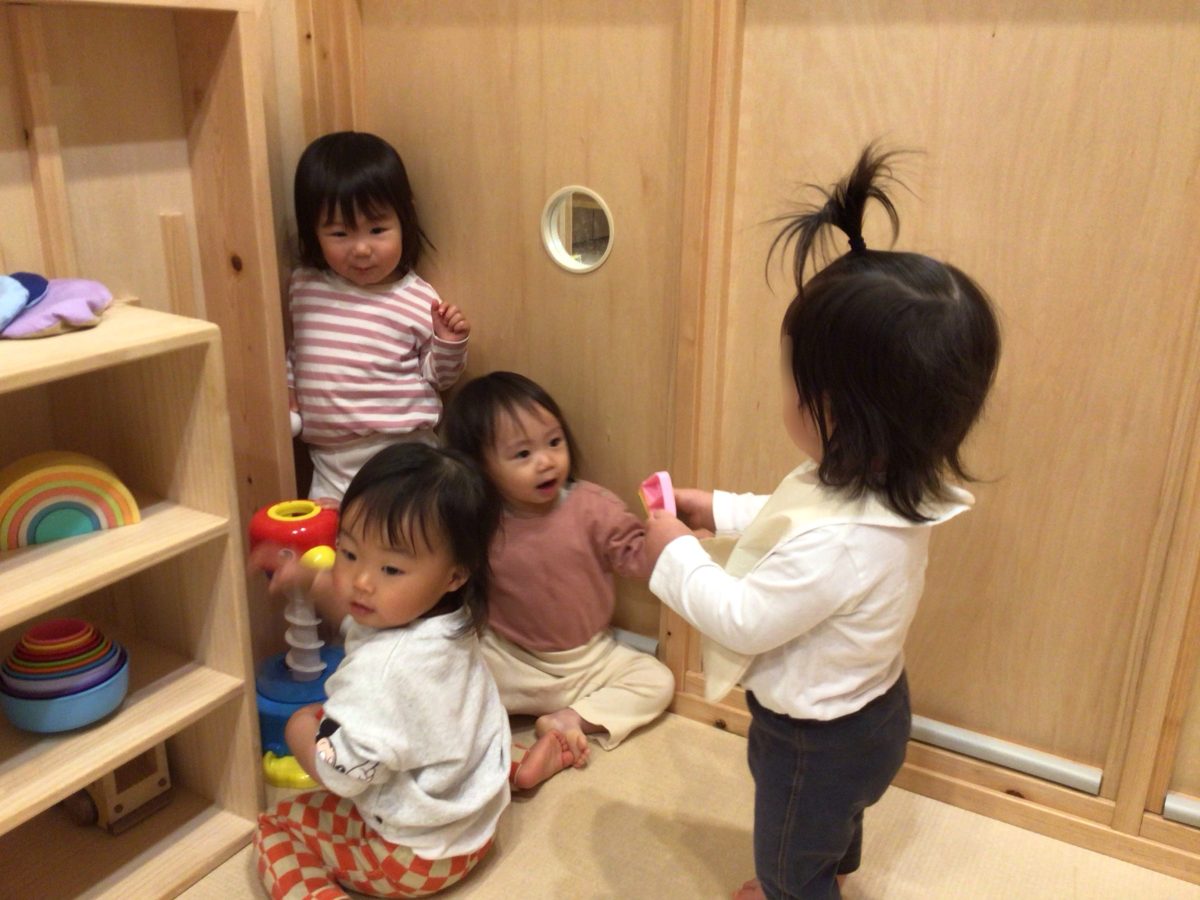 保育者との信頼関係をしっかり作ることで、保育者がそばにいる中で安心して遊べるようになり、保育者から離れて遊べるようになっていき、お友だちにも興味を持ち関わる姿も見られるようになりました。